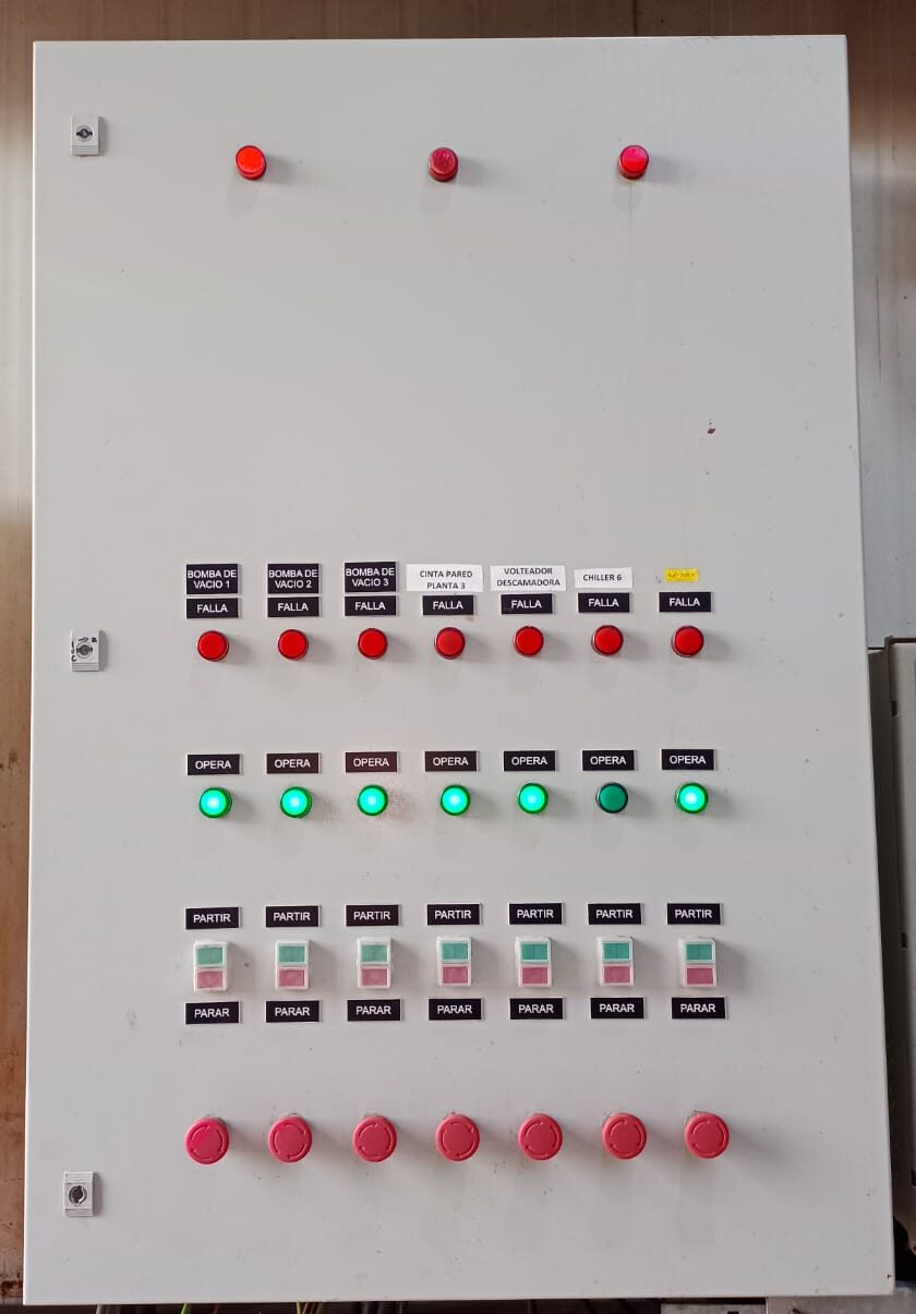 Fabricación de TDF (Tablero de Fuerza y Distribución) para el sistema de bombeo de peces en planta primaria. Solución diseñada para garantizar un control eficiente y seguro del proceso, optimizando la operación y protección de los equipos en la industria acuícola.